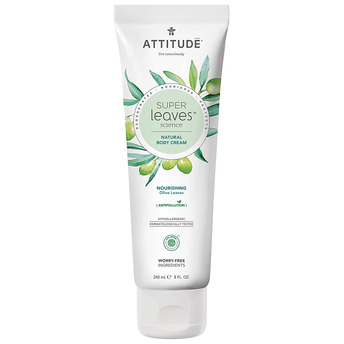 This Attitude Super Leaves Nourishing Body Cream is enriched with olive leaf extract known to hydrate, refresh, soothe and restore the skin. EWG Verified™, hypoallergenic and dermatologically-tested, this body cream includes moringa seed extract, known for its antipollution properties. Put the power of nature to work to give you a healthy and glowing skin.