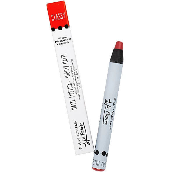 - Paper packaging – paper from a Scandinavian forest managed in sustainable way. Paper is biodegradable and recyclable. Packaging is designed following no waste principal. When you have used up your lipstick, you have also used up the packaging.