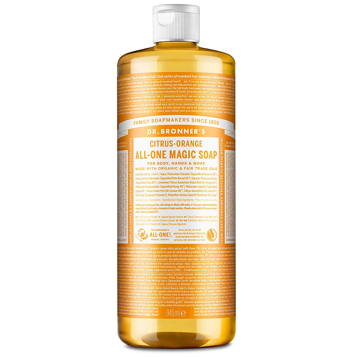 Dr. Bronner’s Citrus Orange All-One Magic Soap – 945ml is part of the range of organic . These eco-friendly soaps are gentle enough to use on your face, hair and body, with products to suit the whole family, whether you’re looking for or a something that’s . Liquid castile soaps are multitaskers, and are tough enough for use as a household detergent too! Explore the full range of , including and , available from Big Green Smile.