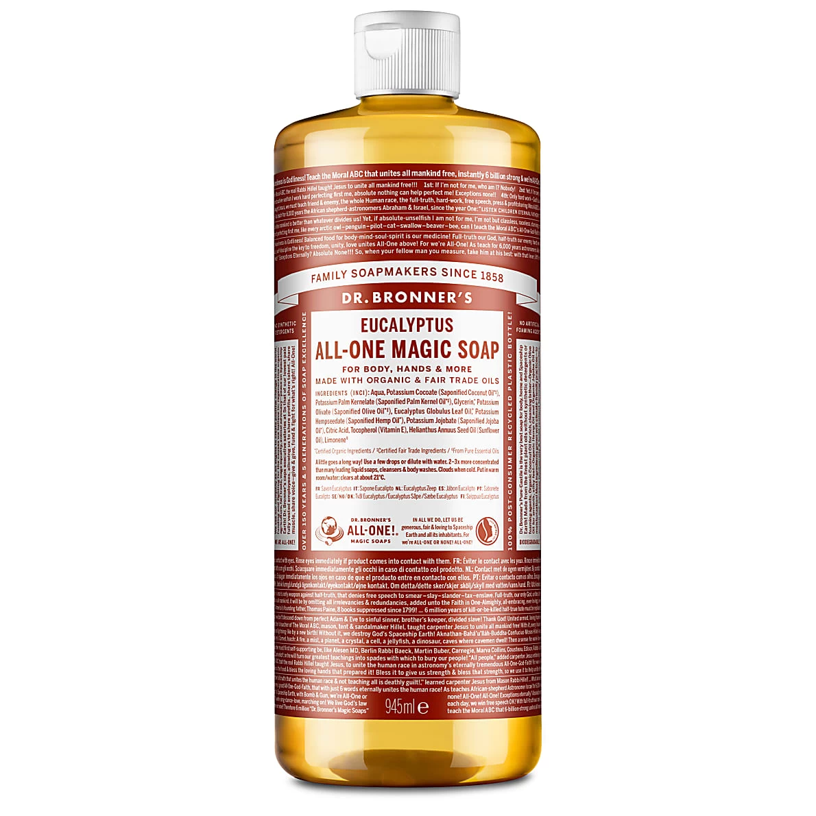 Dr. Bronner’s Eucalyptus All-One Magic Soap – 945ml is part of the range of organic . These eco-friendly soaps are gentle enough to use on your face, hair and body, with products to suit the whole family, whether you’re looking for or a something that’s . Liquid castile soaps are multitaskers, and are tough enough for use as a household detergent too! Explore the full range of , including and , available from Big Green Smile.