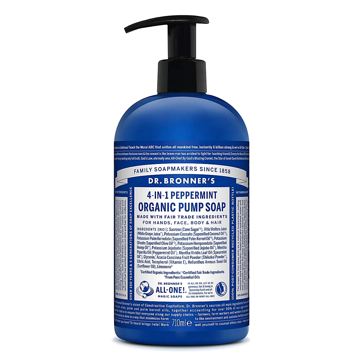 Dr. Bronner’s Organic Pump Soap Peppermint – 710ml is part of the natural range of . Free from any synthetic nasties, this collection of organic liquid soaps is vegan, cruelty-free and . With 10 delightful scents and formulations to choose from, you’re sure to find your perfect match! Find , those who have  and more. Explore the full range of , including  and , available from Big Green Smile.