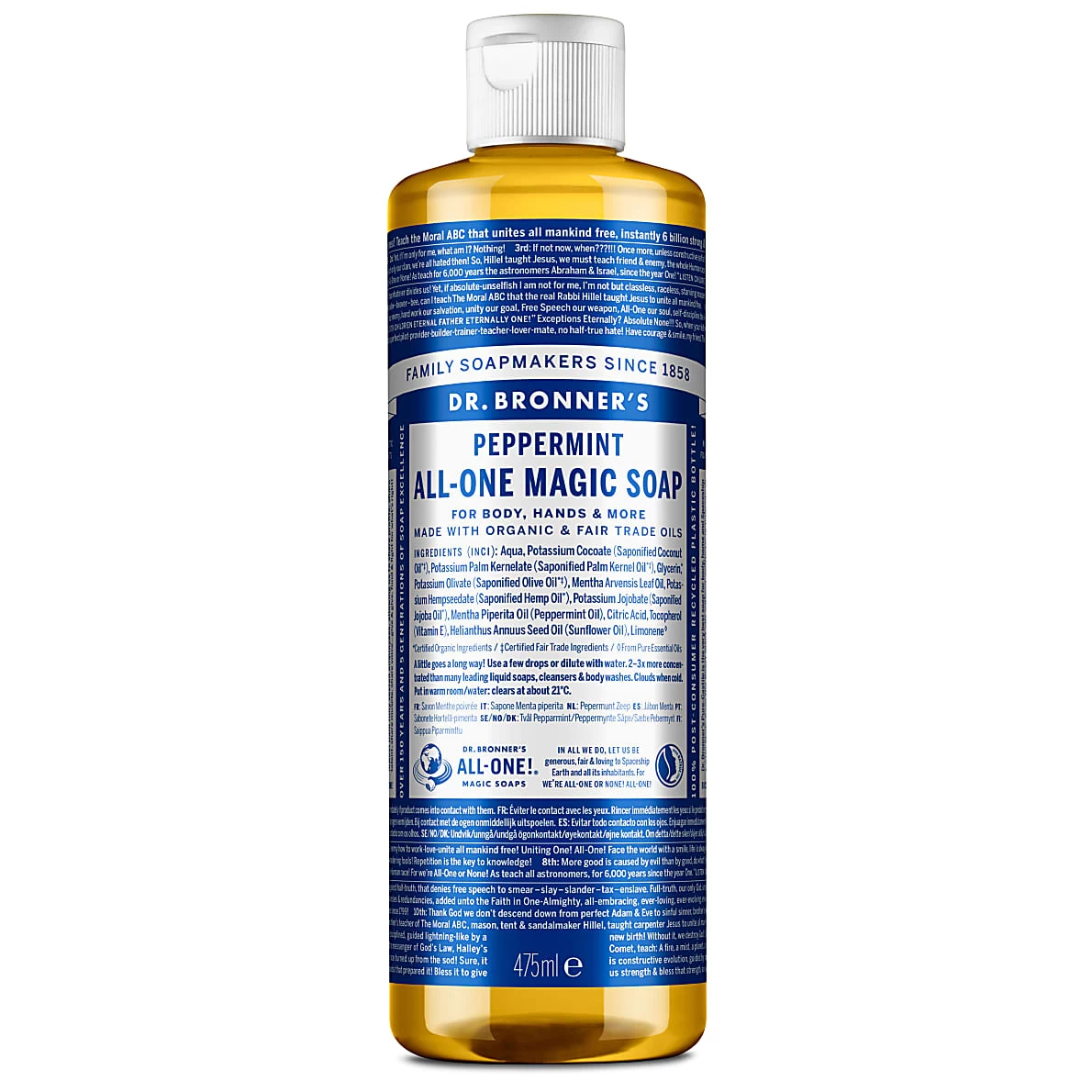 Dr. Bronner’s Peppermint All-One Magic Soap – 475ml is part of the range of organic . These eco-friendly soaps are gentle enough to use on your face, hair and body, with products to suit the whole family, whether you’re looking for or a something that’s . Liquid castile soaps are multitaskers, and are tough enough for use as a household detergent too! Explore the full range of , including and , available from Big Green Smile.