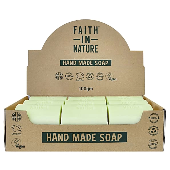 The Faith in Nature Box of 18 Unwrapped Aloe Vera Soaps is great value for money. Bulk buy your bar soap and save around 40p per bar! Faith in Nature aloe vera soap harnesses the benefits of organic aloe vera blended with ylang ylang and patchouli essential oils to soothe skin while gently and effectively cleansing. These boxes of unwrapped soap offer a more sustainable way of reducing waste in your body care regime, perfect for anyone wanting to be as kind to the environment as they are to their skin.