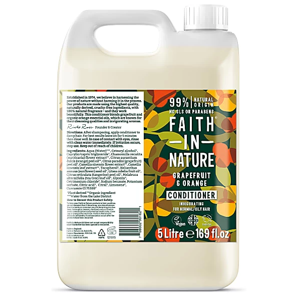 Faith in Nature Grapefruit & Orange Conditioner 5L is a bulk buy conditioner that offers a more sustainable way of reducing plastic waste in your hair care regime. It blends grapefruit and organic orange essential oils which gently cleanse and invigorate, leaving greasy hair feeling fresh and smelling great. This cruelty-free and vegan conditioner is perfect for anyone wanting to be as kind to the planet as they are to their hair.