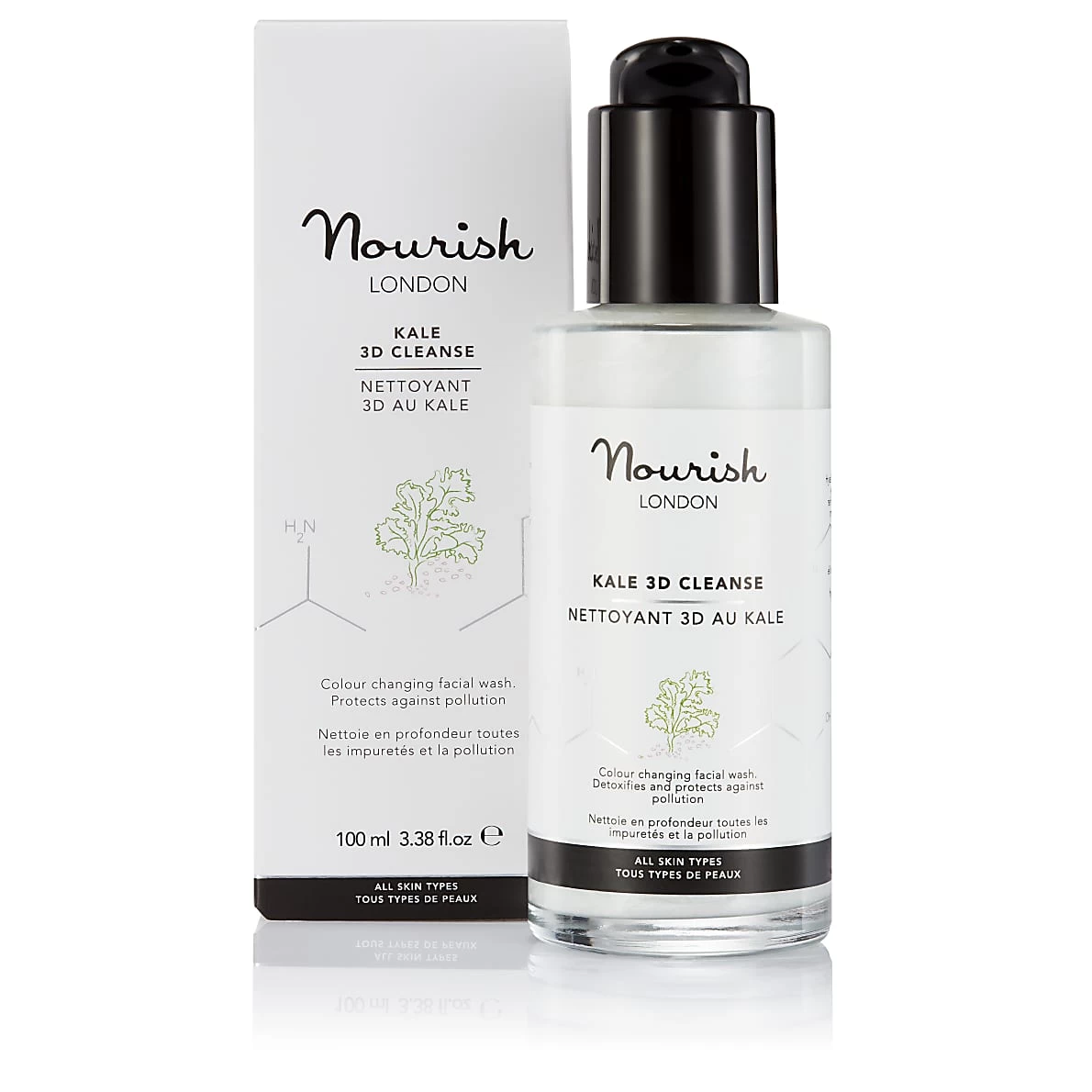 Reveal healthy, radiant skin with this innovative kale cleanser that gently but deeply cleanses the skin, removing make-up and any impurities. Scientifically formulated with hyaluronic acid, probiotics and oxygenating extracts it helps to energise and refresh the skin. Supercharged kale and Griffonia detoxify and protect against pollution, helping to minimise signs of ageing.Â