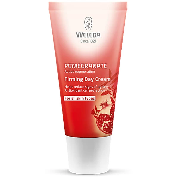 Weleda Pomegranate Firming Day Cream is a rapidly absorbed cream that uses natural radical interceptors to protect the skin from harmful exposure to the elements. This anti-ageing Weleda day cream contains organic pomegranate oil and is carefully blended with golden millet, argan and macadamia oils to nourish and regenerate ageing skin. Dermatological tests showed that after 28 days of use depth of wrinkles were reduced by 14%* and skin elasticity improved by 11%**.